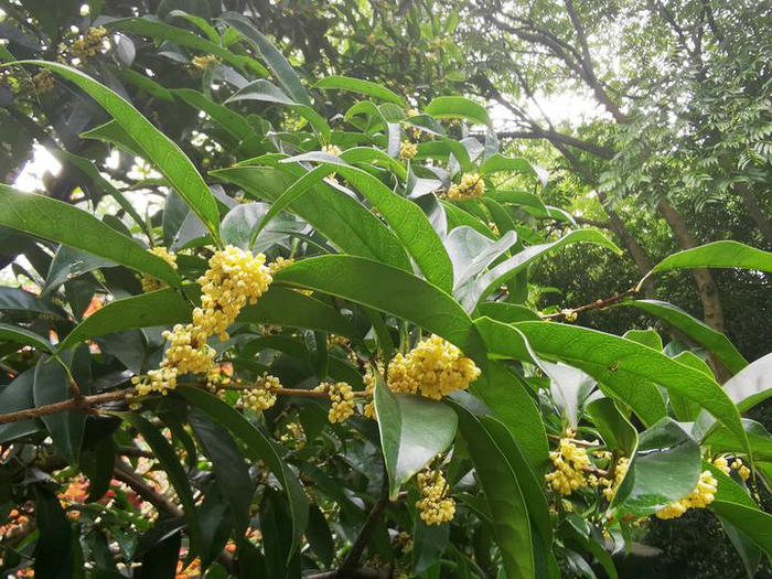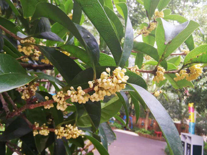 9月5日一大早,杭州少儿公园,工作人员还未走近桂花林,就惊喜地闻到了熟悉的桂花香,清甜气息似乎把身上的每个细胞都激活了。凑近一看,前一天还被黄褐色膜壳包裹的花芽,竟然在一夜之间,脱去了外壳,抽出了花梗,露出了淡黄色的花朵。 米粒般小小的花朵饱满厚实,掩映在高高低低的桂叶中,清丽出尘,婉约淡雅。清甜的香气,从小花顶端微微张开的空隙中钻出来,随风飘散。这是属于杭州的独特味道。