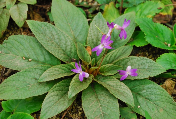 绢毛马铃苣苔(整株) 1. 学名:Oreocharis sericea (Lévl.) Lévl. 2. 科名:苦苣苔科Gesneriaceae 3. 特征:多年生草本,叶片、花梗、花萼均被绢状柔毛。叶莲座状基生;叶片长圆状椭圆形或椭圆形,先端急尖,基部近圆形。聚伞花序2~3次分枝,每花序具4~6花;花蓝紫色,花冠喉部缢缩,近基部稍膨大,檐部二唇形,上唇2裂,下唇3裂。蒴果细长圆柱形。花期6~9月,果期9~10月。 4. 分布:产于杭州(淳安)、台州、衢州、金华、丽水、温州;分布于华东、华中、华南及贵州。 5. 生境:生于海拔800m以下的山谷沟边岩石上。 6. 园林用途:花形独特,叶莲座状,甚为美观,可用于岩面、花坛或盆栽观赏。 7. 繁殖方式:播种、叶插、组培繁殖。 细花泡花树